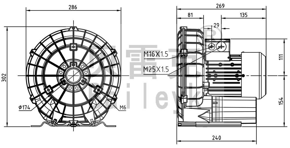 最大風量:145m3/h 最大正壓:120mbar 最大負壓:120mbar 防護等級:IP55 噪音:63db 重量:15Kg