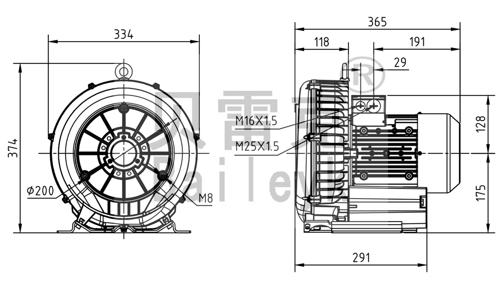 最大風量:270m3/h 最大正壓:150mbar 最大負壓:160mbar 防護等級:IP55 噪音:65db 重量:24Kg