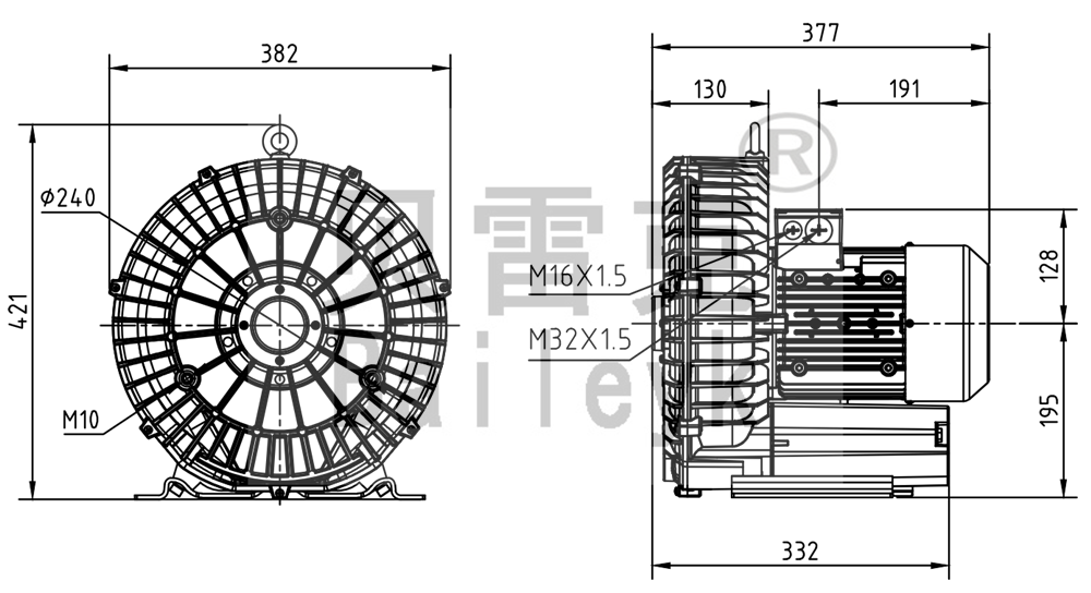 最大風(fēng)量:318m3/h 最大正壓:190mbar 最大負(fù)壓:190mbar 防護(hù)等級(jí):IP55 噪音:69db 重量:31Kg